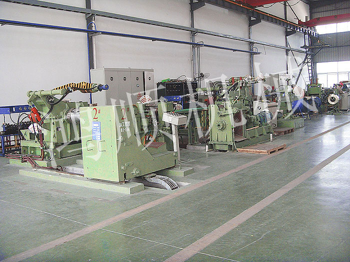 本机为多对刀片的圆盘剪切机组,由放料架、送料机、工作台、圆盘剪切机、卷取机、电气控制柜组合成一个机组。用于剪切中炭钢、普炭钢、有色金属的20吨以下的大筒卷板料。按各种用度裁剪各种宽度的窄带,作为焊管坯料冷轧带钢料及其它用途的扳带,是目前使用进口及国产大卷筒扳料必须配备的设备。